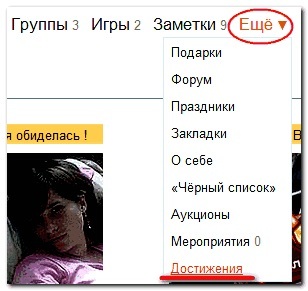Жмете по вкладке «Еще» и в списке в самом низу найдете «Достижения»: