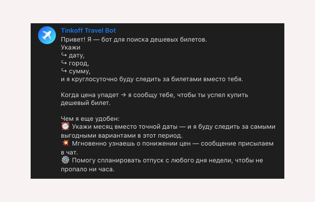 «Тинькофф Путешествия» запустил бота в Telegram – он найдет оптимальные авиабилеты