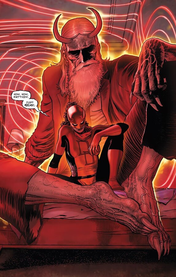 В Daredevil #1, написанном Саладином Ахмедом и нарисованном Аароном Кудером, воспоминания начинают возвращаться. Герой также получил жутковатое усиление своих способностей, которое радикально изменит его дальнейшую судьбу. Внезапно он начинает видеть демонов, выдающих себя за людей.