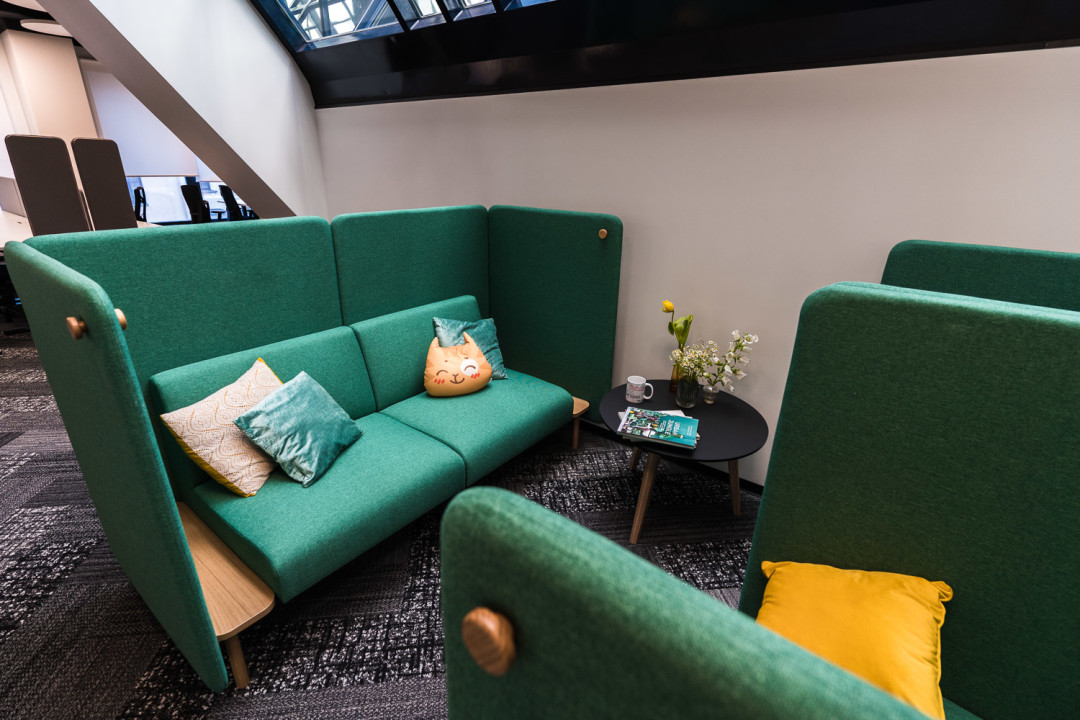 ВКонтакте разместилась на втором, третьем и четвертом этажах, чуть позднее запустится шестой этаж с открытой террасой — команда планирует проводить здесь внутренние мероприятия, рабочие встречи и встречать закаты с видом на Исаакиевский собор. Часть рабочего пространства будет отведена под коворкинг для тех, кто выбрал гибридный режим работы. Это универсальные рабочие места — они не закреплены за кем-то одним, а бронируются ровно на тот день, когда сотруднику нужно прийти в штаб.