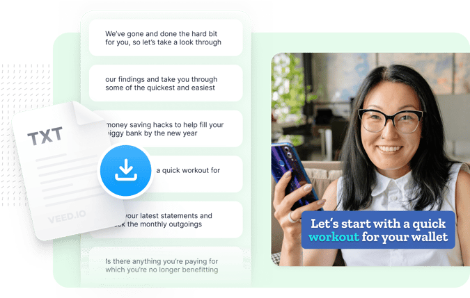 Вы можете использовать VEED для распознавания языков со всего мира и перевода транскрипций,чтобы сделать видео доступным для глобальной аудитории. Ваши видео, переведенные на разные языки, также будут доступны для поиска людям со всего мира. VEED позволяет с легкостью добавлять транскрипции и переводы, а загрузка расшифрованного видео в виде файла TXT выполняется за один щелчок мыши! Откройте с помощью Microsoft Word или любого текстового процессора.