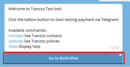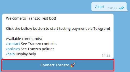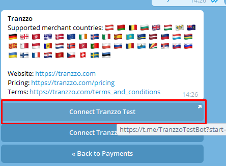 Шаг 4: Запускаем бота Tranzzo, далее нажимаем кнопку «Connect Tranzzo Test».