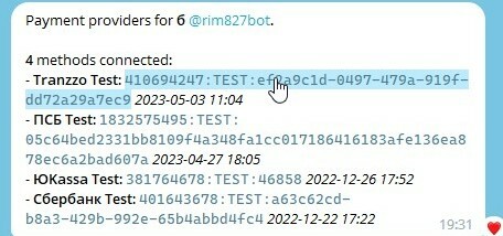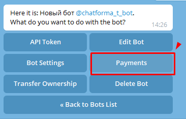 В настройках появился раздел Платежные системы. В него добавляем токен, который получили от ботфазера.