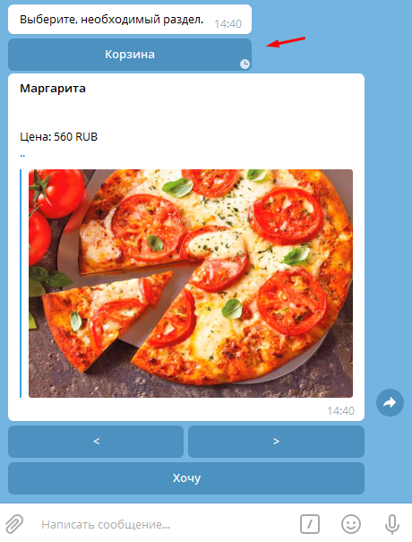 Шаг 1: Переходим в сообщение, которое содержит корзину.