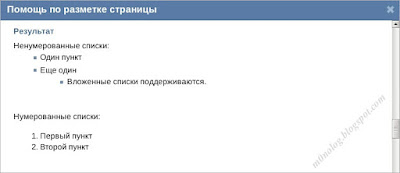 В режиме wiki-разметки Заметки имеются также и другие возможности: