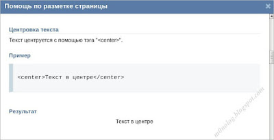 Рис. 4. Теги для форматирования текста в Заметках ВКонтакте. |