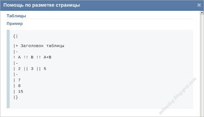 Рис. 7. Пример wiki-разметки для таблицы. |