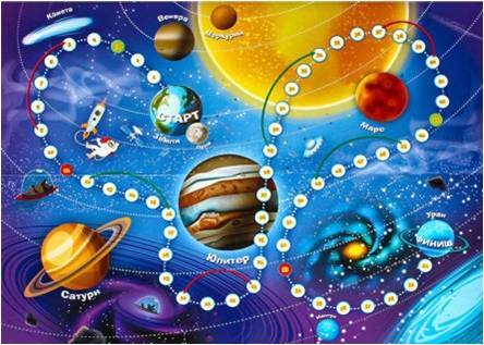 Конкретный пример на уроке астрономии: ученикам было предложено поиграть в игру-бродилку, однако они сами составляют вопросы по определённым параграфам на каждый шаг в игре. В дополнение к игре приобрела карточки с вопросами, на случай возврата по игровому полю. Урок прошёл отлично!