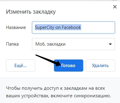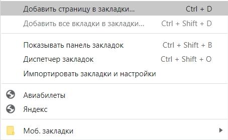 В открывшемся окошке выберите «Добавить страницу в закладки»: