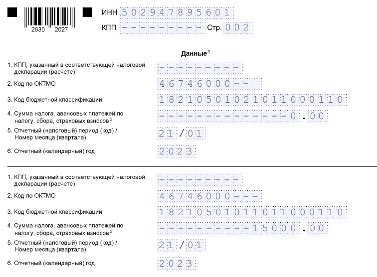 Если организация или ИП допустило ошибку в основных реквизитах документа – ОКТМО, КПП, КБК, налоговый и отчетный периоды, нужно составить еще одно уведомление.