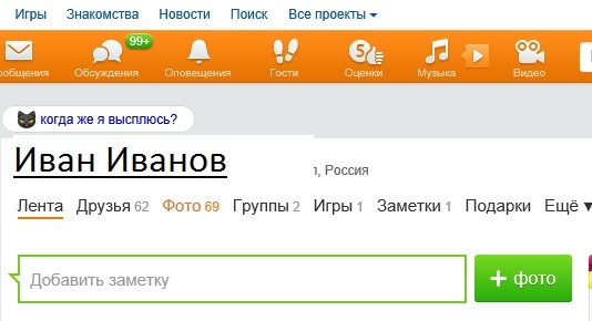- Под своим именем, снизу видим такие слова: Лента Друзья Фото .