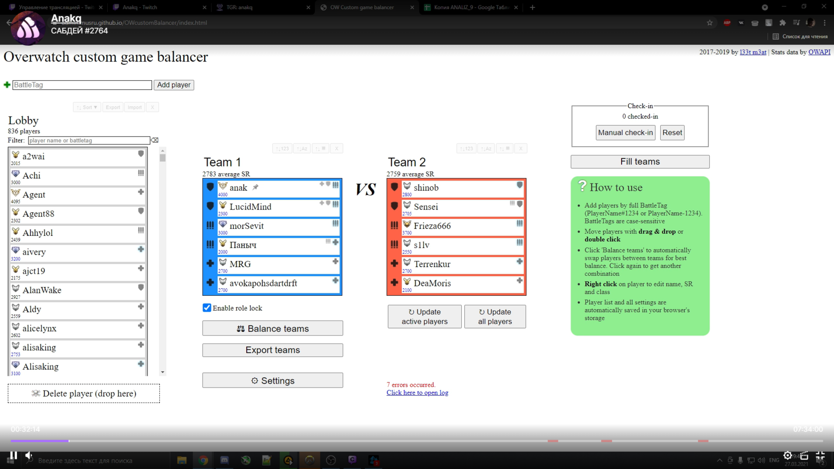 Списки команд в соревновании по Overwatch на канале Anakq