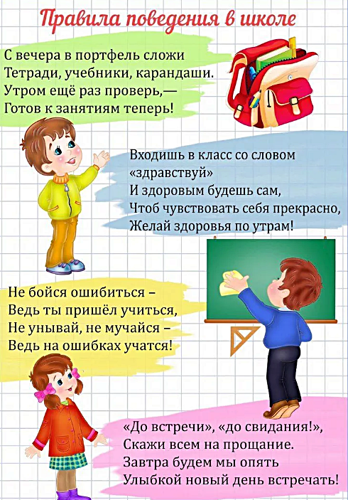 Примеры того, как дети оформляли правила поведения в школе:
