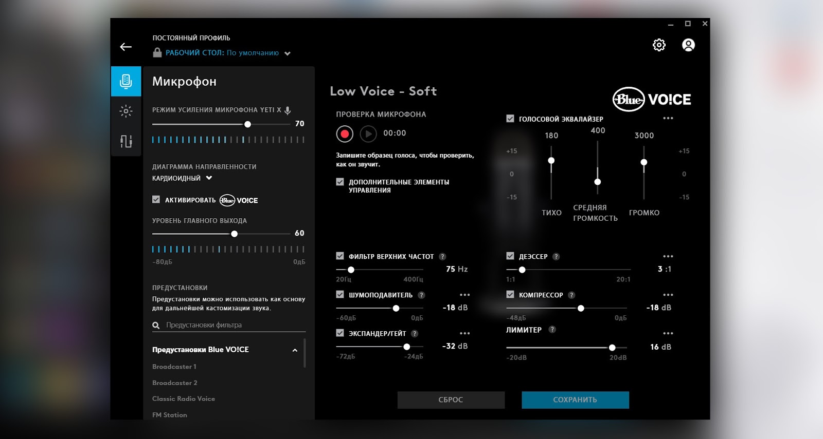 Отличная универсальная настройка микрофона Blue Yeti