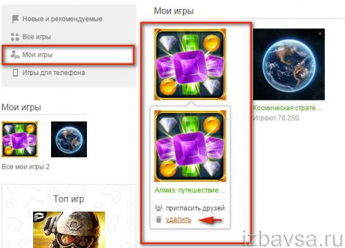 Удаление игр в Одноклассниках