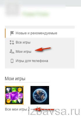 - Открываем сайт odnoklassniki.ru, заходим в свой профиль, в левом столбце под аватаркой нажимаем пункт «Игры».