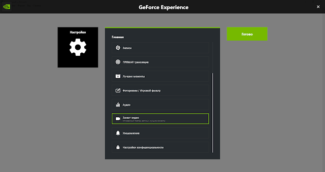 Запись видео с экрана с помощью Nvidia ShadowPlay в GeForce Experience