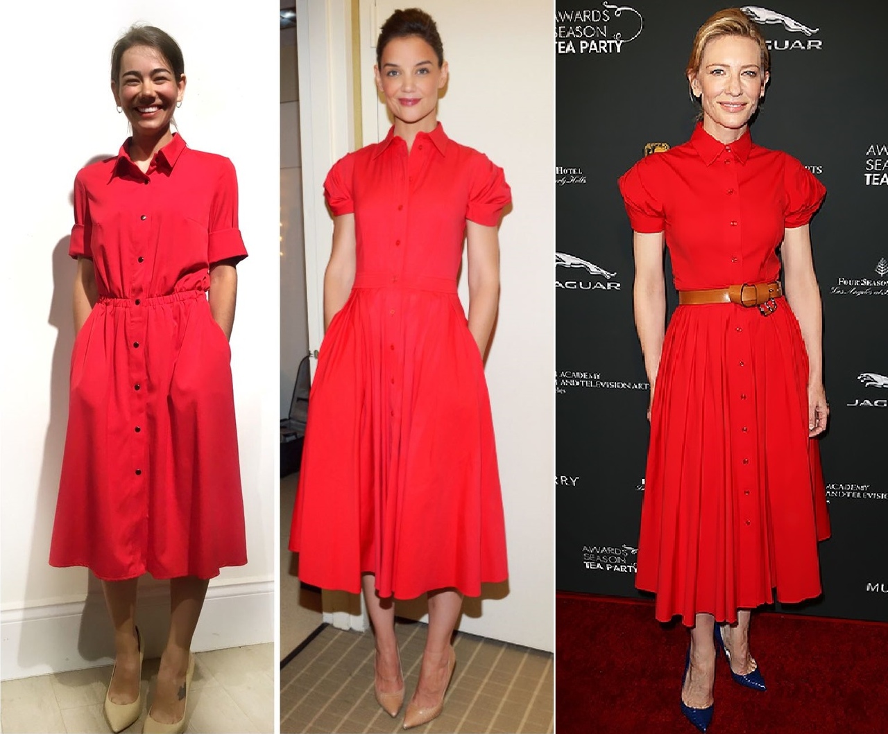 Кэти Холмс и Кейт Бланшетт вышли в свет в одинаковых платьях от Michael Kors. А мы выбрали для нашей модели платье от Verushka. По мнению наших стилистов, это платье даже более функциональное — рукав 3/4 скрывает полные плечи и позволяет носить его круглый год, а не только летом.