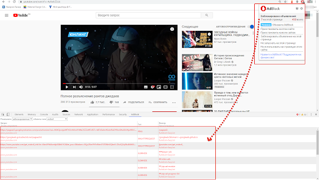 - блокировка рекламы на любых других сайтах, через которые возможна загрузка контента с видеохостинга;