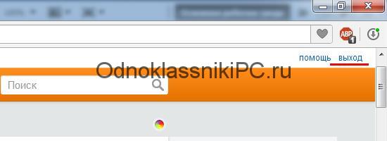 Пользователь, который авторизован в «Одноклассники», должен выйти из своего аккаунта. Для этого в верхнем углу страницы, справа, нажать кнопку «Выйти».