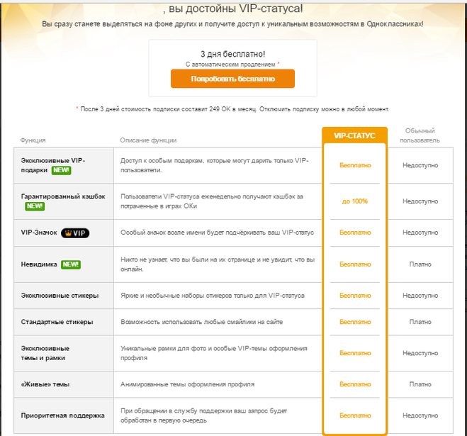Какие преимущества даёт vip статус в Одноклассниках?