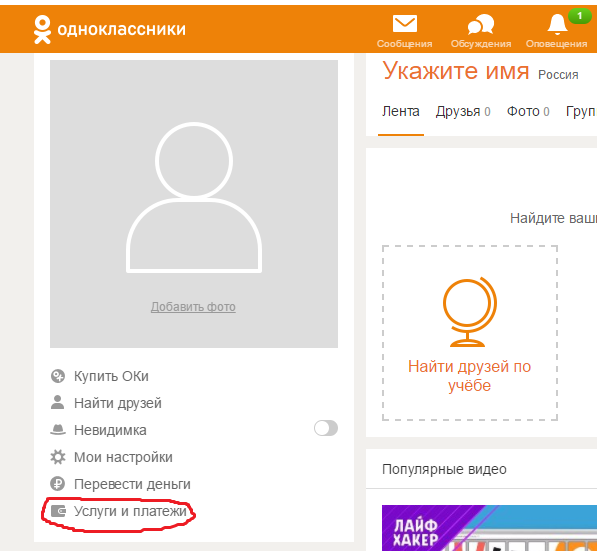 Вход в аккаунт Одноклассников