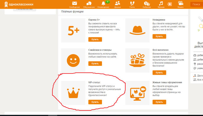 Как подключить vip статус в Одноклассниках?