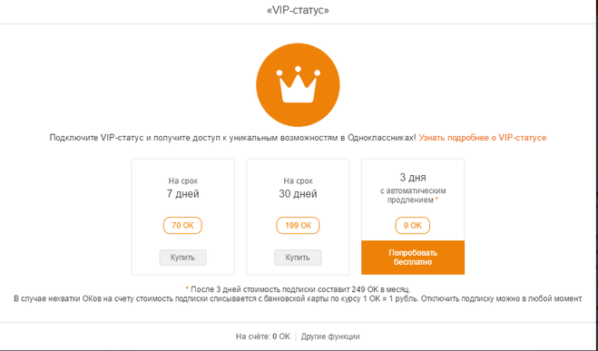 Сколько стоит VIP-статус в Одноклассниках?