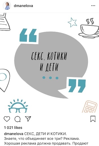 Когда план составлен, можно писать посты, сторис и тезисы для эфиров. Сторис — в основном работают на развлечение и вовлечение, хотя продающие сторис в период действия акции или промо-компании — сегодня уже обязательны. Прямые эфиры подразумевают в большей степени экспертный контент.