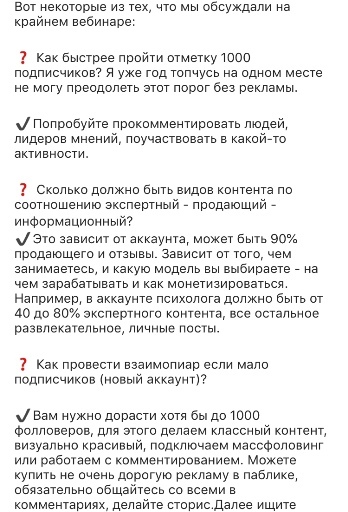 Содержит максимум пользы, ваших знаний и поддерживает/повышает ваш уровень экспертности в глазах подписчиков.