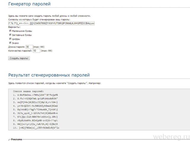 4. Если не знаете, какой ключ оптимально защитит ваш почтовый ящик от несанкционированного доступа, используйте генератор паролей. На этих веб-сервисах можно задать все параметры комбинации — длину, символьный набор, алгоритм составления (рандомный, читаемый, сгенерированный с использованием методов энтропии).