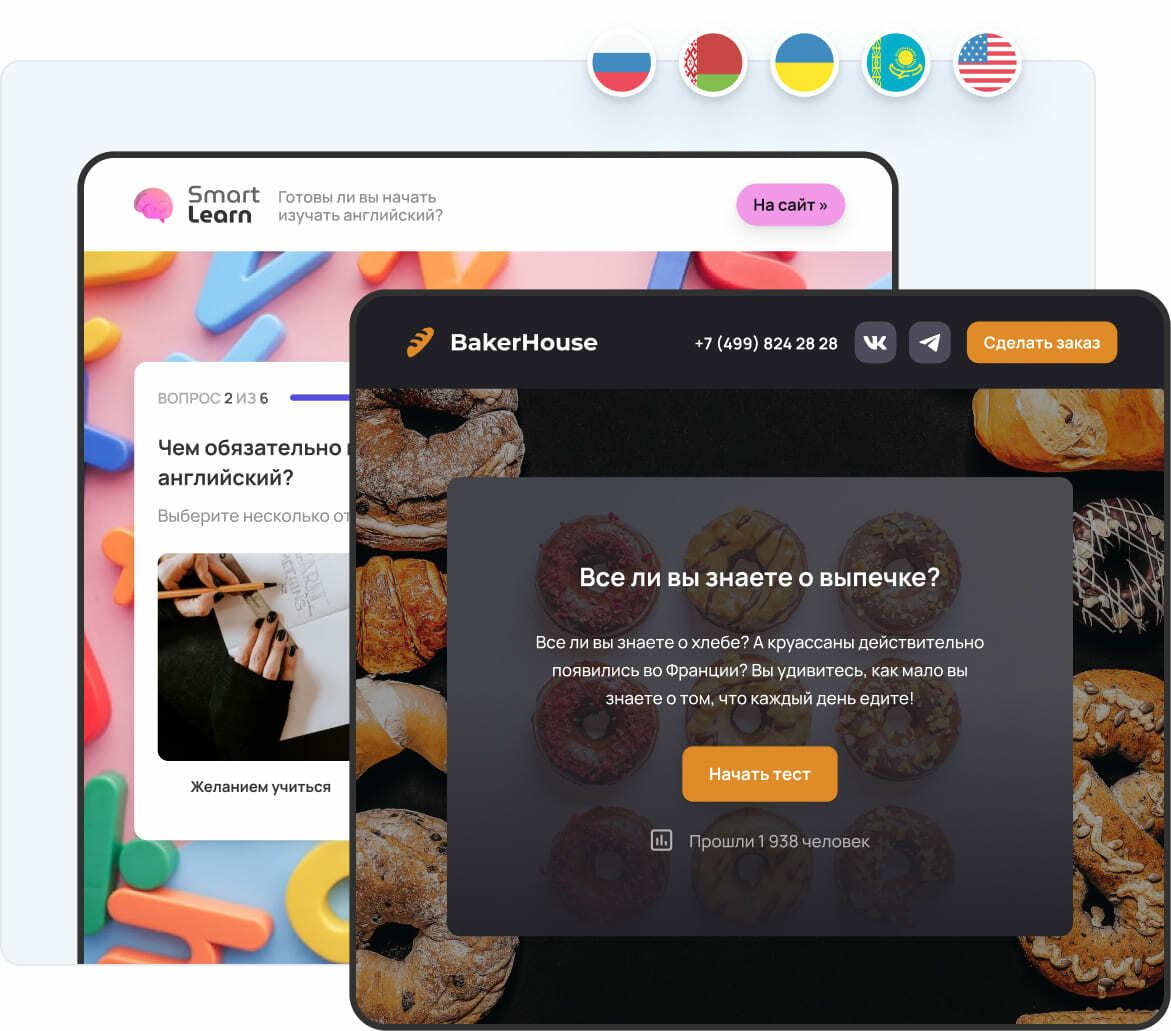 Для квизов доступна локализация на несколько языков. Подключенные языки: русский, украинский, белорусский, казахский, английский, чеченский.