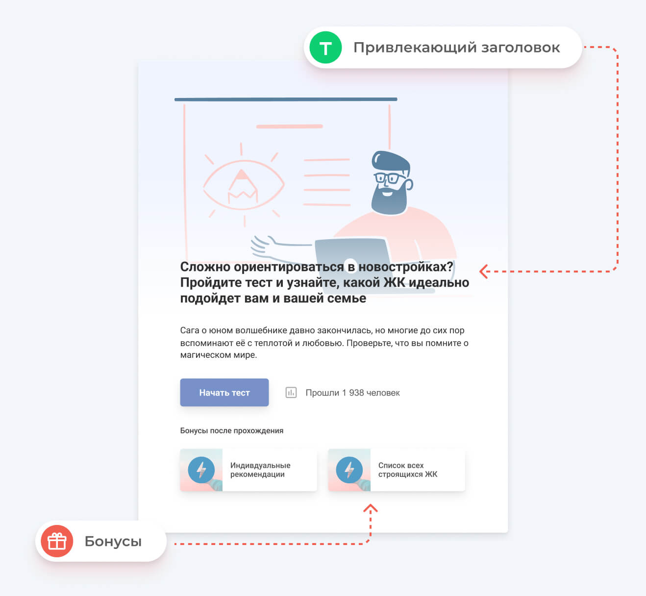 Придумайте заголовок, который бросит вызов знаниям пользователей. Предложите бонус или скидку за прохождение викторины до конца.