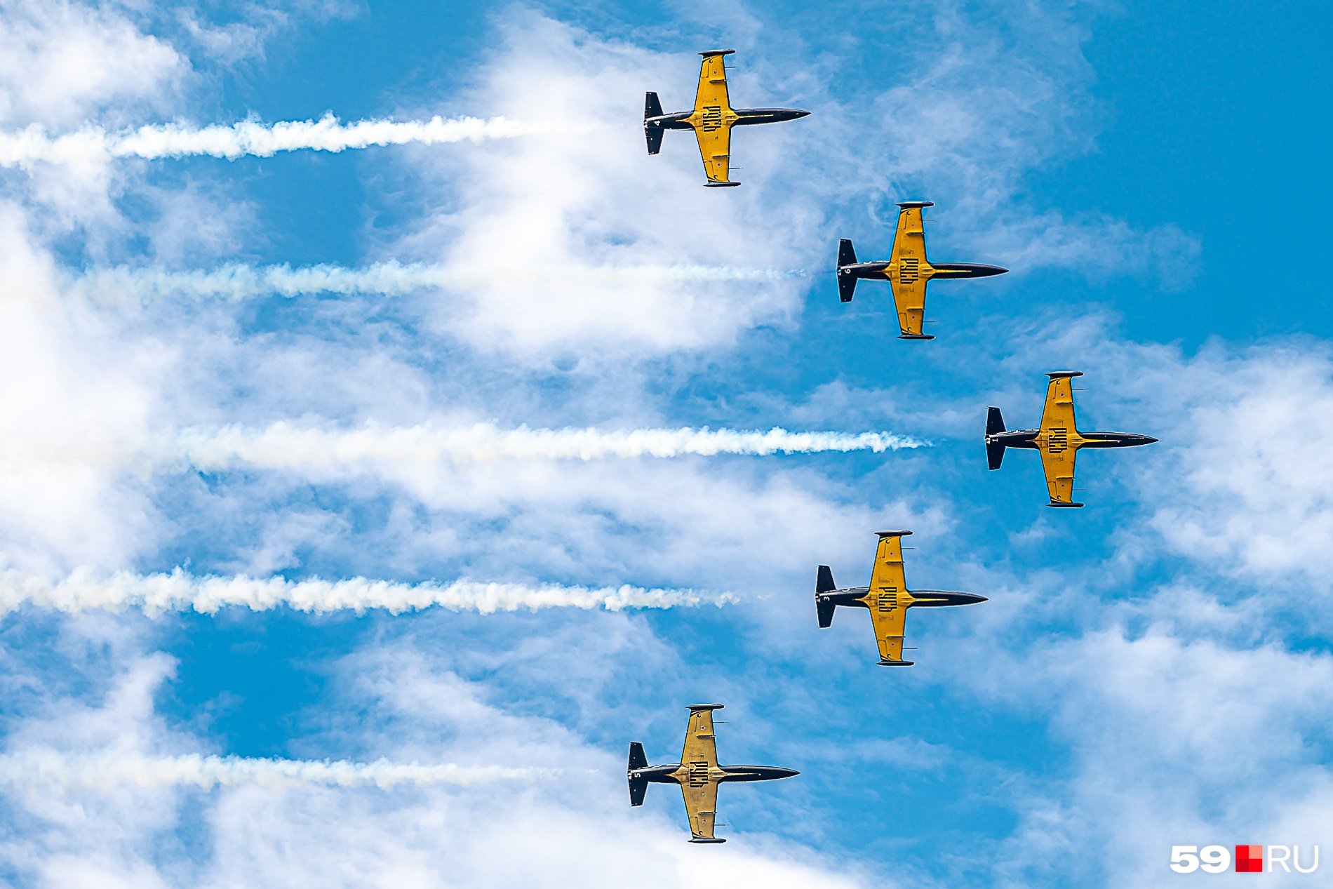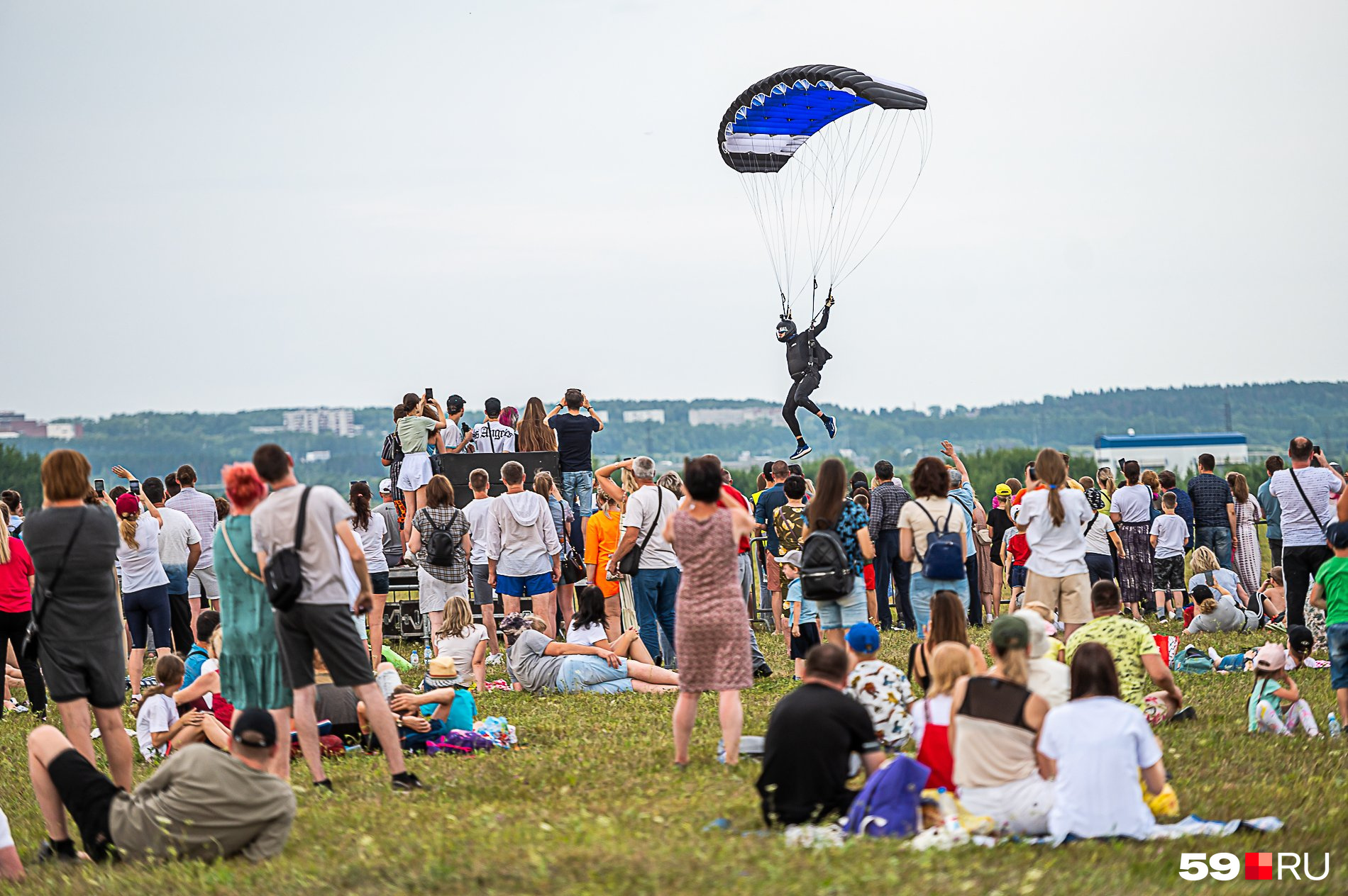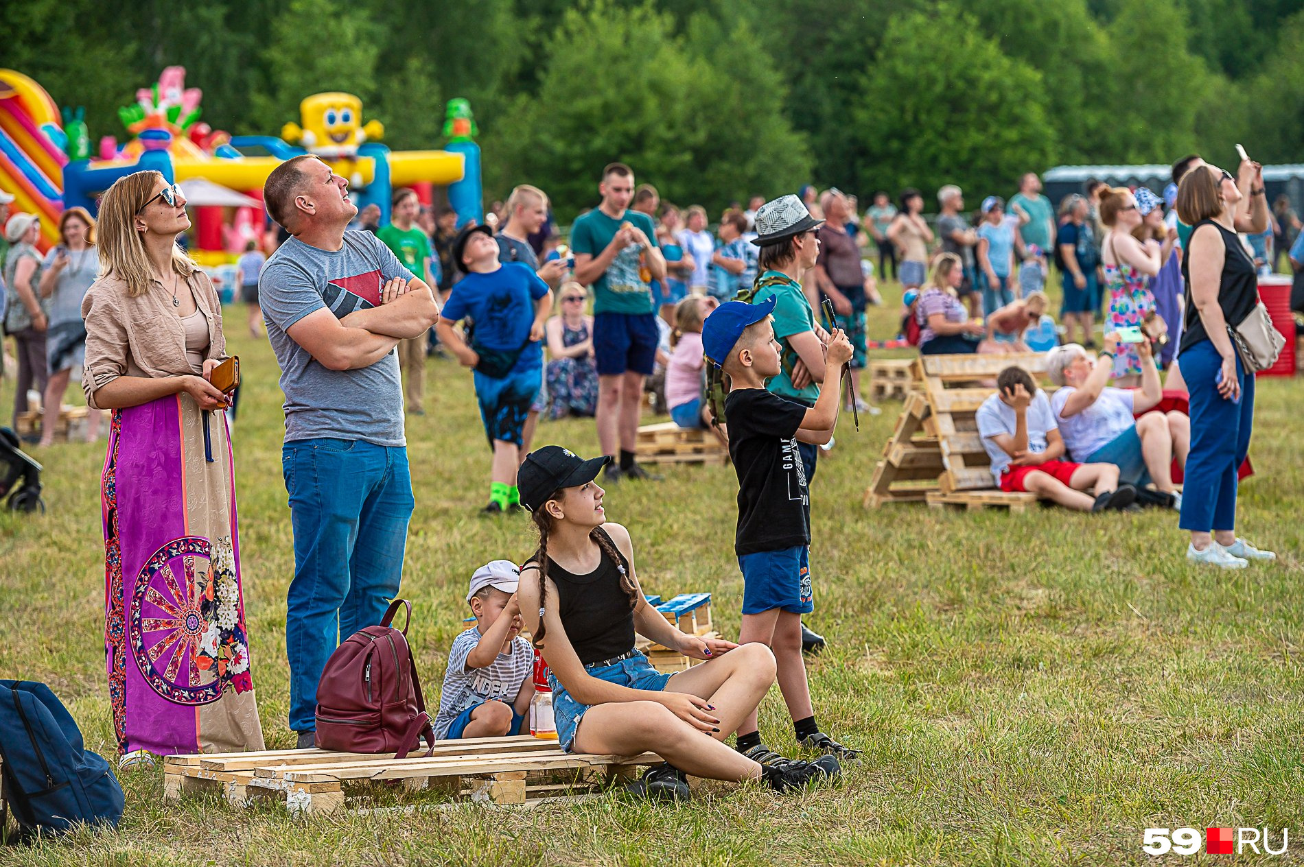 Фестивальную поляну заполнили сотни пермяков. Приезжали семьями. Первой выступила профессиональная пилотажная группа на поршневых самолетах «Первый полет». Летчики выполнили сложные фигуры, а в конце выступления нарисовали в небе огромное сердце. Публика встретила приветствие с неба овациями.