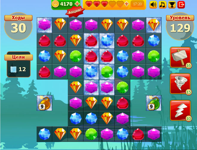 На 129 уровне нужно за 30 ходов разбить 12 ячеек льда.
