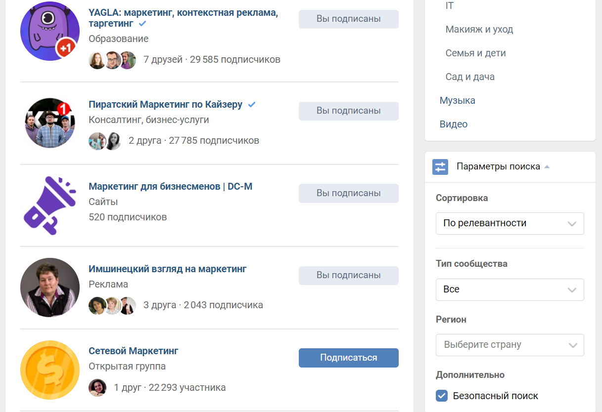 - Правильно выберете группу – получите большой охват целевой аудитории.