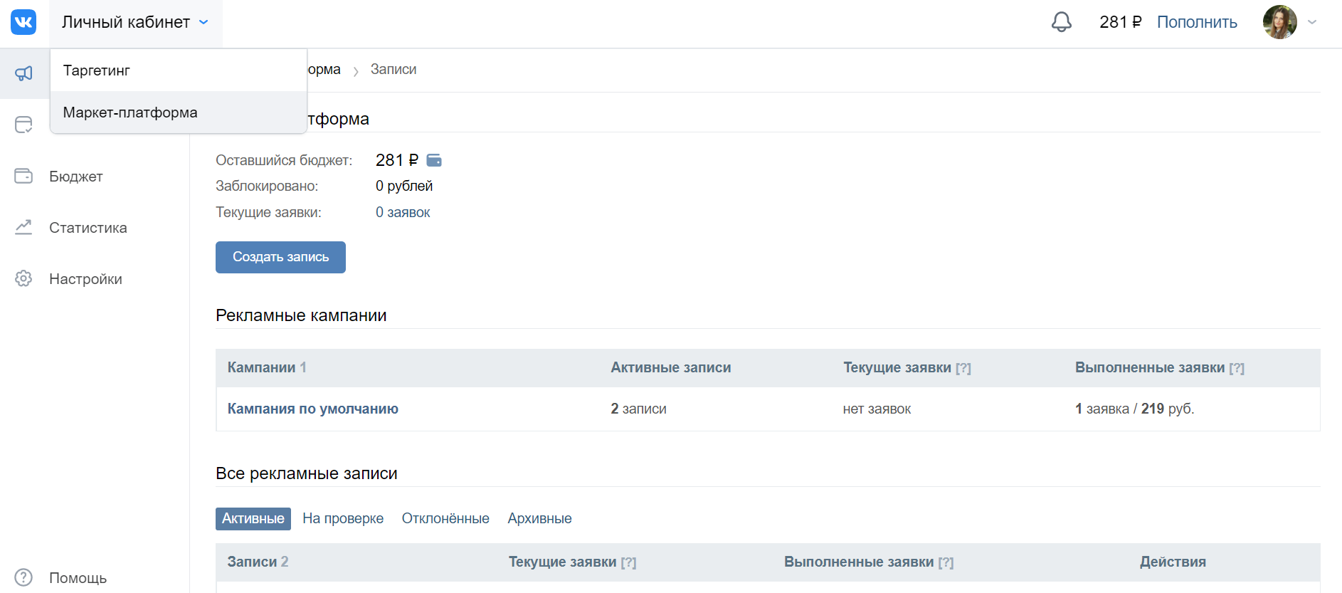Когда вы разместите заявку на размещение рекламы, то информацию о ее статусе будет доступа в разделе «Заявки».