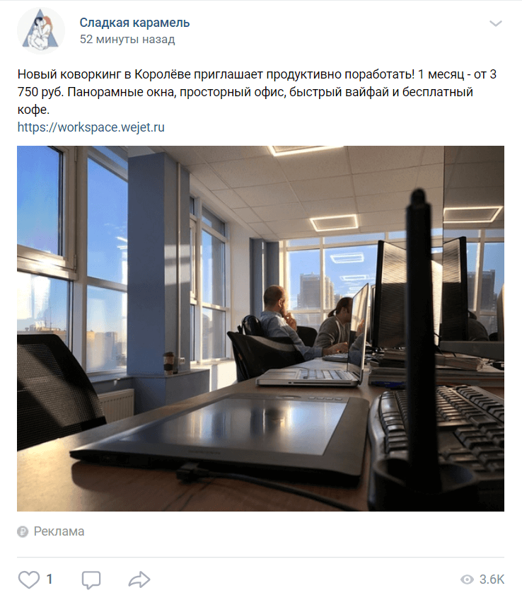 Так будет выглядеть опубликованная реклама: