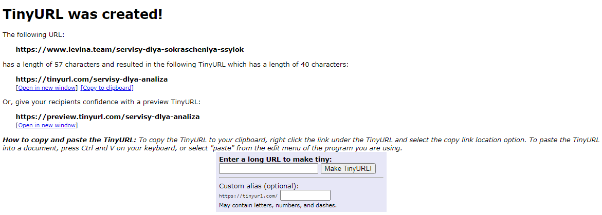 Еще один сокращатель ссылок принадлежит Яндексу и хорош тем, что не находит ошибок со ссылками и укорачивает ссылки произвольно.