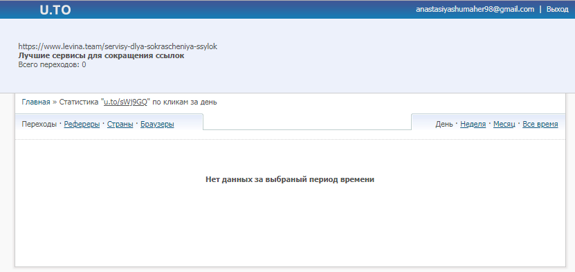 Чтобы увидеть статистику переходов по сокращенному адресу, необходимо кликнуть на кнопку «Статистика» .