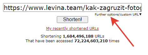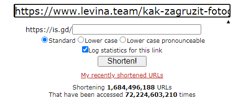 Чтобы проверить его работу, вы можете взять любой длинный адрес, вставить его в пустое поле и кликнуть по кнопке «Shorten!» . После этого is.gd легко сократит его. Для отслеживания статистики в процессе создания ссылки нужно нажать на «Further options» и поставить отметку возле «Log statistics for this link» .