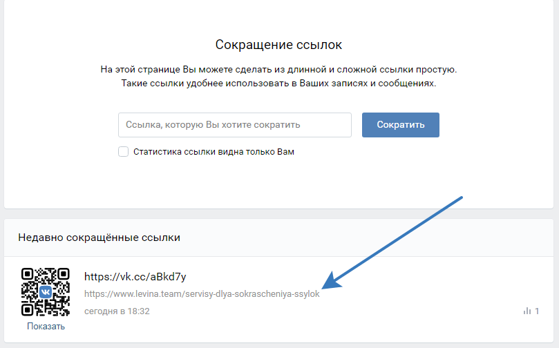 Все ранее укороченные ссылки будут доступны на странице vk.cc в разделе «Недавно укороченные ссылки», если вы вошли в свой аккаунт.