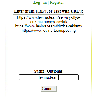 Далее необходимо кликнуть на кнопку «Gooo. ». После этого сервис предоставит пользователю ссылки, которые он ввел, в сокращенном виде.