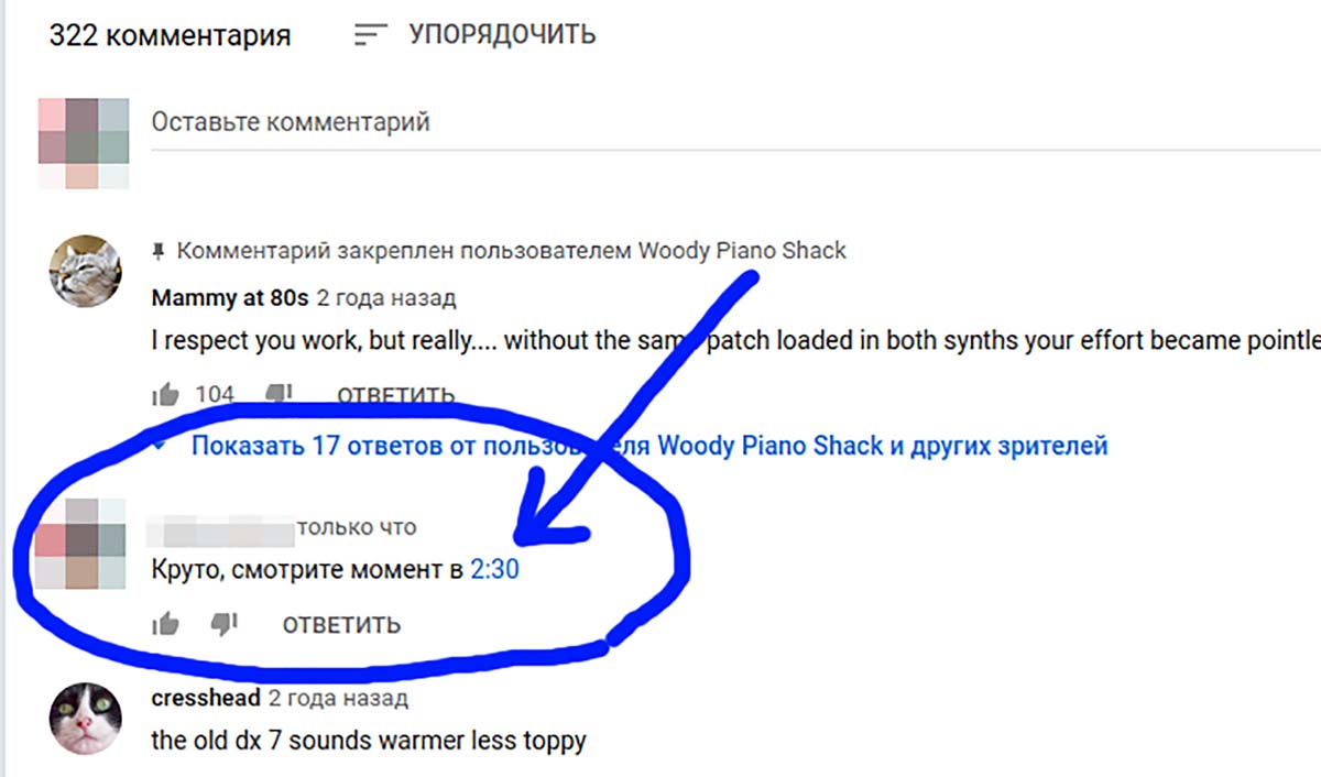 Чтобы поставить в комментариях ссылку с таймкодом, нужно всего лишь написать 2:30 в формате минуты:секунды :