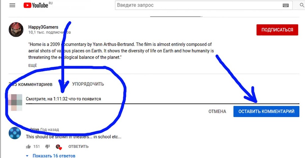 Если вы не являетесь автором видео или же не имеете доступа в аккаунт Ютуб, с которого был опубликован ролик, тайм-коды можно оставить в комментариях.