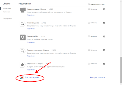 Далее пролистываем в самый низ и выбираем — еще расширения
