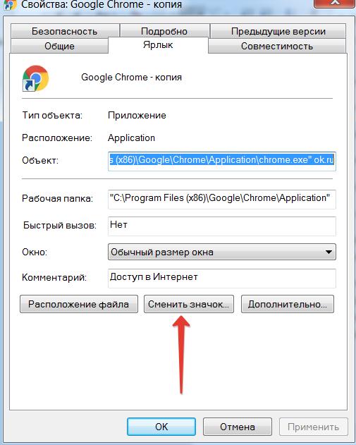 Ярлык создан, значки скачаны, остался лишь последний пункт – установить значок Одноклассников для ярлыка на рабочем столе. Вот что следует сделать: