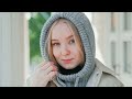 Тёплый капюшон крючком. Подробное видео.