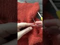 5. Ряд вяжем красной пряжей по раппорту узора *3 ст, длинная петля, пропуск текущей петли*. В этом ряду сделано смещение узора так, что длинная петля находится между длинными петлями предыдущего цвета (ф11, ф12).