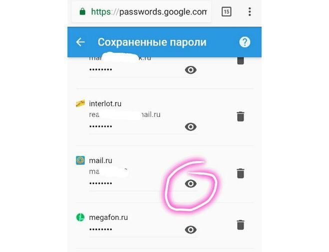 Все пароли, которые были сохранены. При нажатии на глазик появятся заветные буковки и циферки.